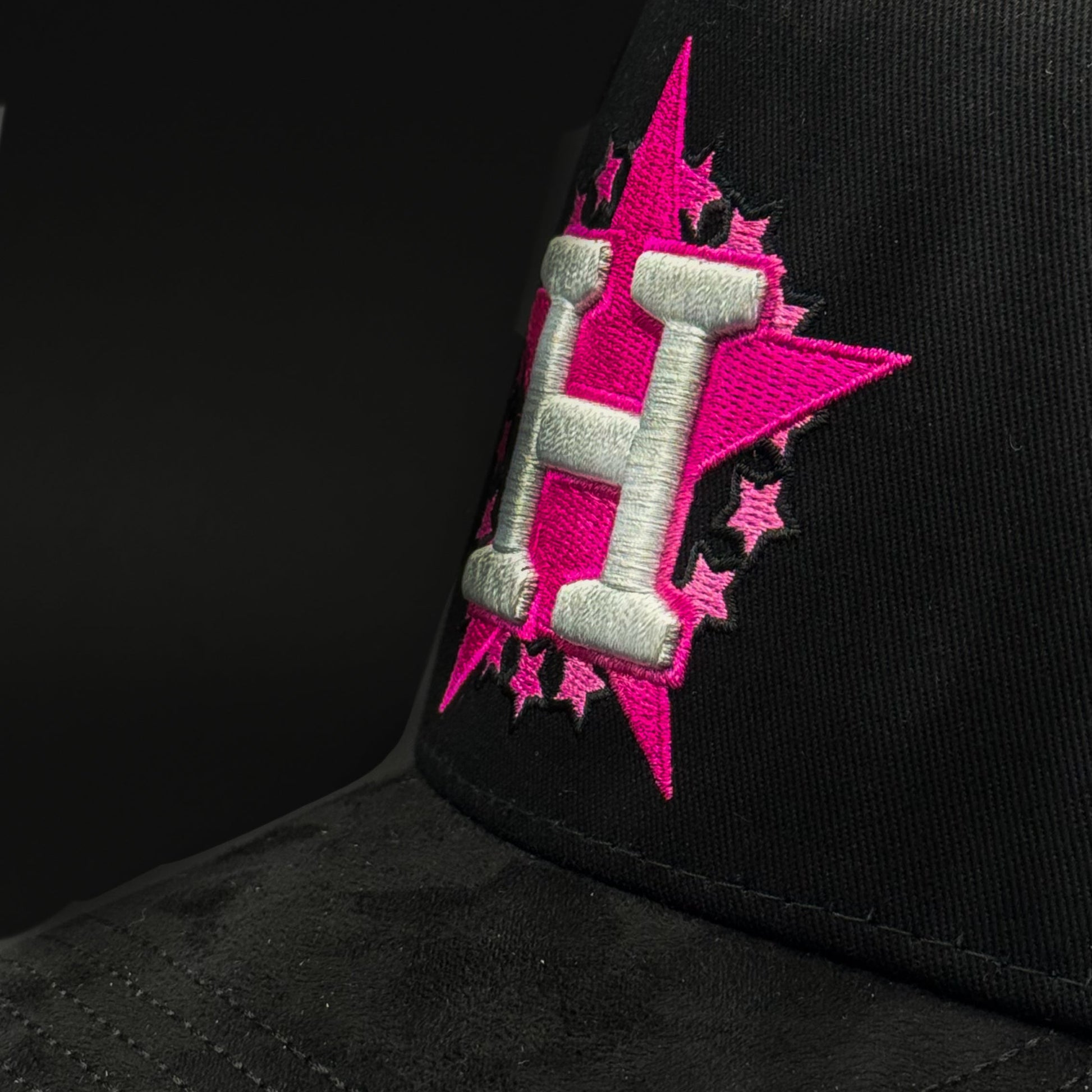 Gorra Dandy Hats en colaboración con Junior H bordados rosas con logo de Houston