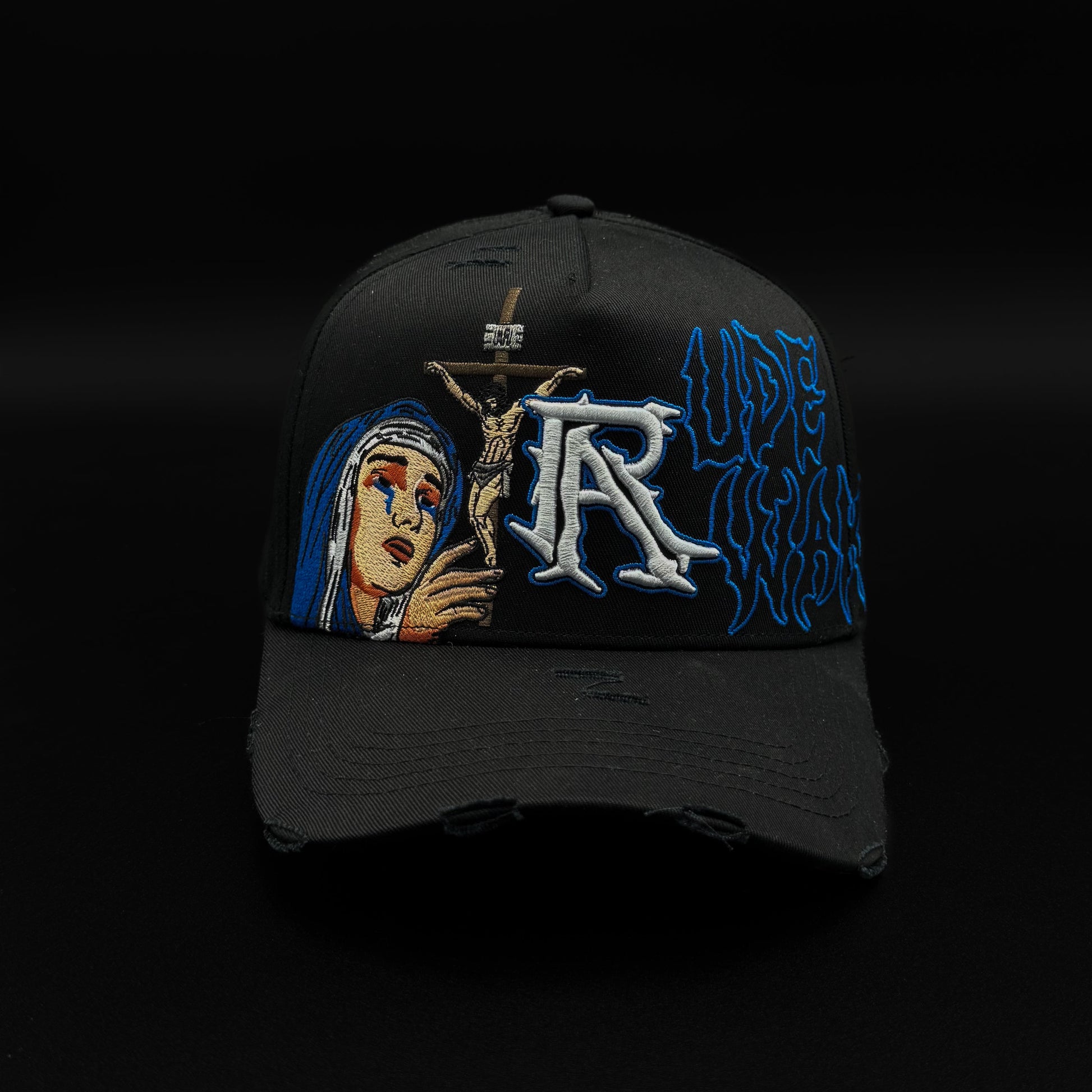 La gorra Rude Awakening “Crusifixion” presenta un bordado detallado que representa a María contemplando la crucifixión de Jesús, fusionando arte y simbolismo religioso. Confeccionada con materiales resistentes, ofrece un ajuste cómodo y duradero, ideal para quienes valoran tanto el estilo como el significado profundo en sus accesorios. Esta pieza exclusiva aporta un toque de reflexión y autenticidad a cualquier conjunto.